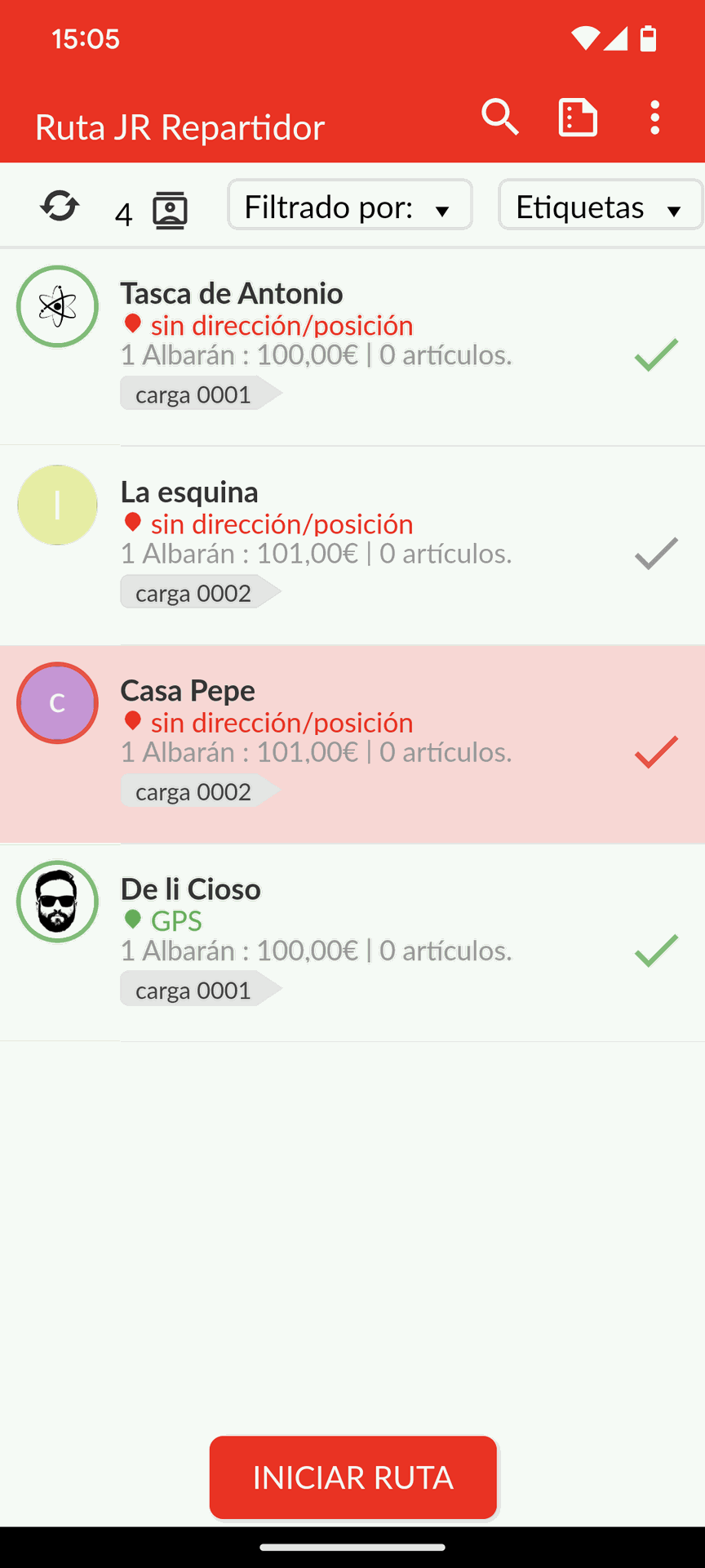 Cada madrugada se cargan la lista de entregas previstas y puedes darle a optimizar la ruta en cualquier momento según el tráfico real.